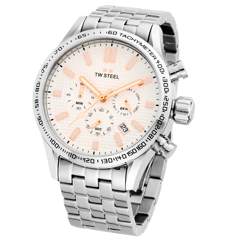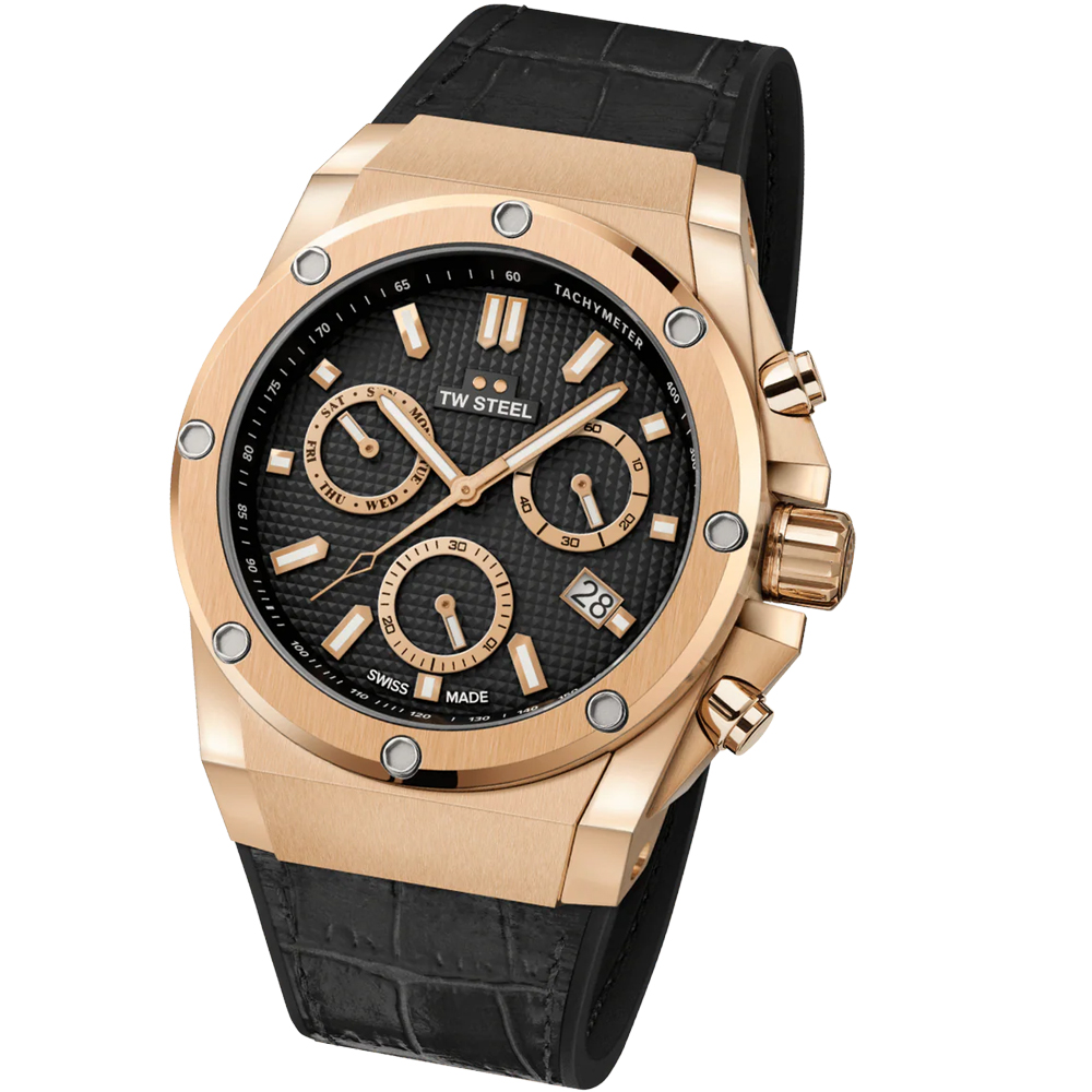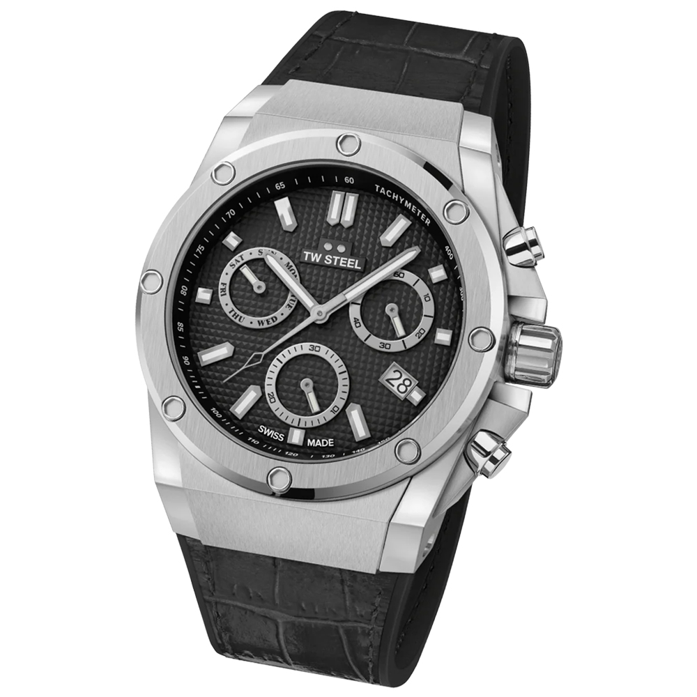 The Volante Collection adds refined edge to our signature sport-driven style, combining full stainless steel bracelets or leather with dynamic chronographs and sleek automatics, built to elevate your everyday presence. Taking the classic TW Steel attitude and puts it on the open road.