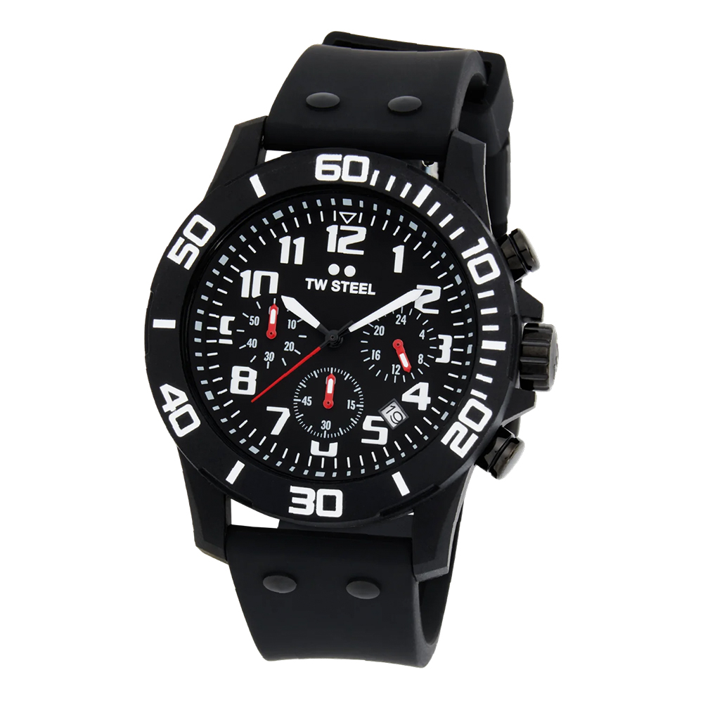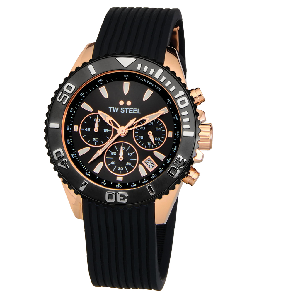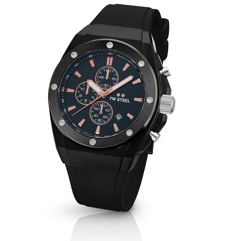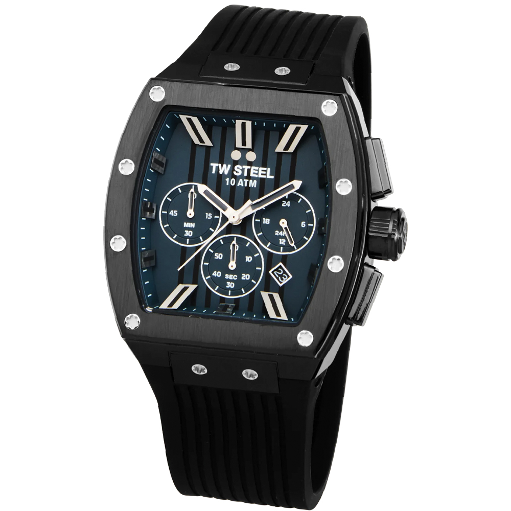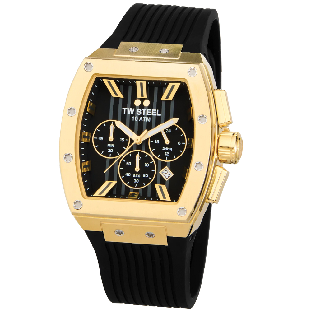 Experience bold yet timeless elegance with the TW Steel Tonneau Collection. These sleek timepieces feature chronograph movements, rubber straps, and a folded clasp for a perfect blend of style and functionality.