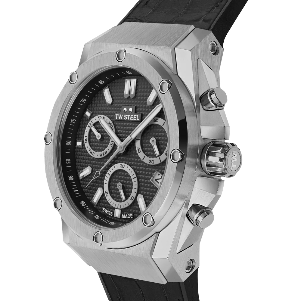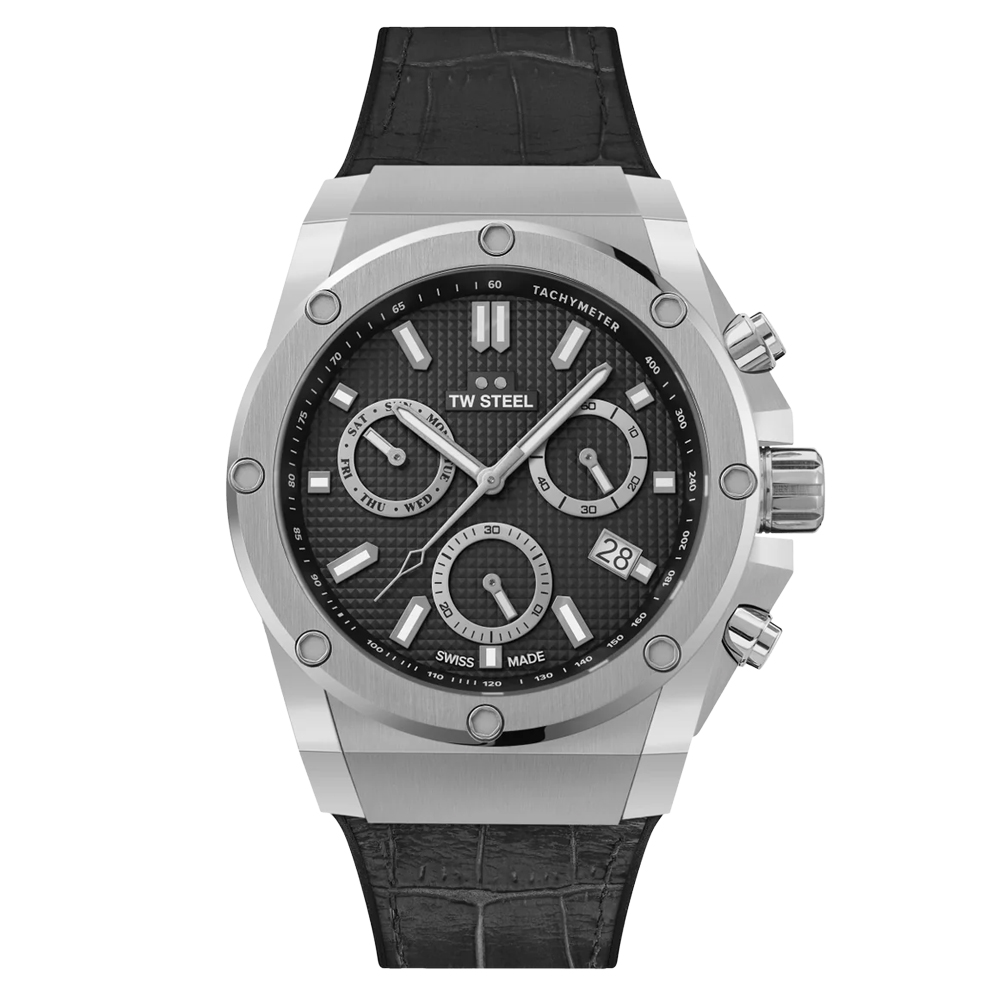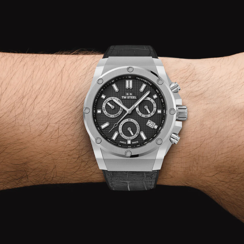 Make your mark with precision. This Swiss Made chronograph is limited to 1000 pieces and features the Ronda Z60 movement, sapphire crystal, 44mm 316L steel case and 20 ATM water resistance.