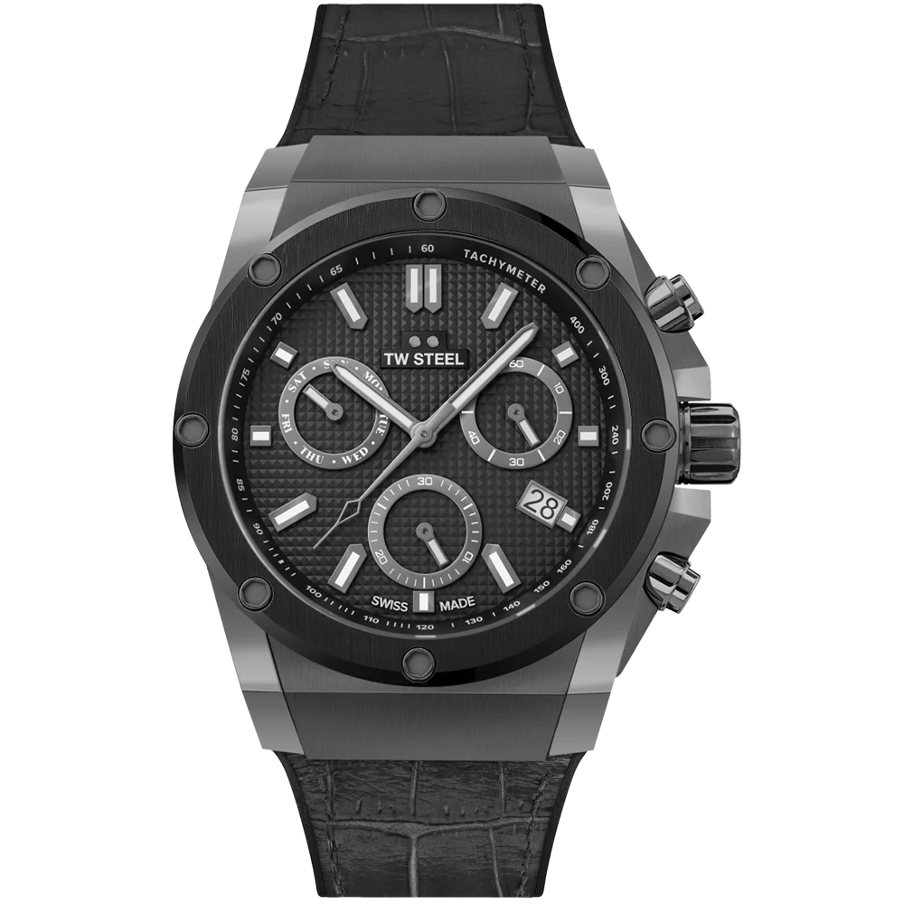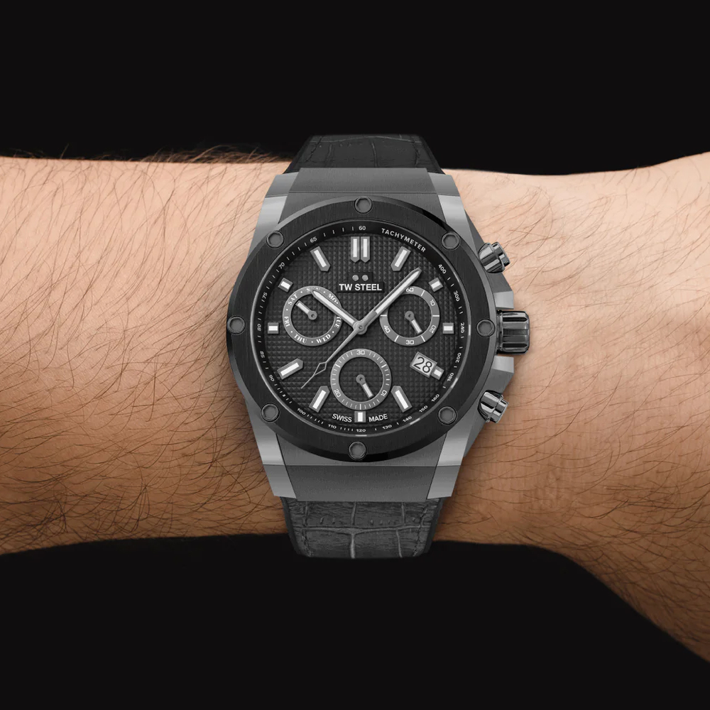 A stealth statement in black. This Swiss Made chronograph is limited to 1000 pieces and equipped with a Ronda Z60 movement, sapphire crystal, 44mm black case and 20 ATM water resistance.