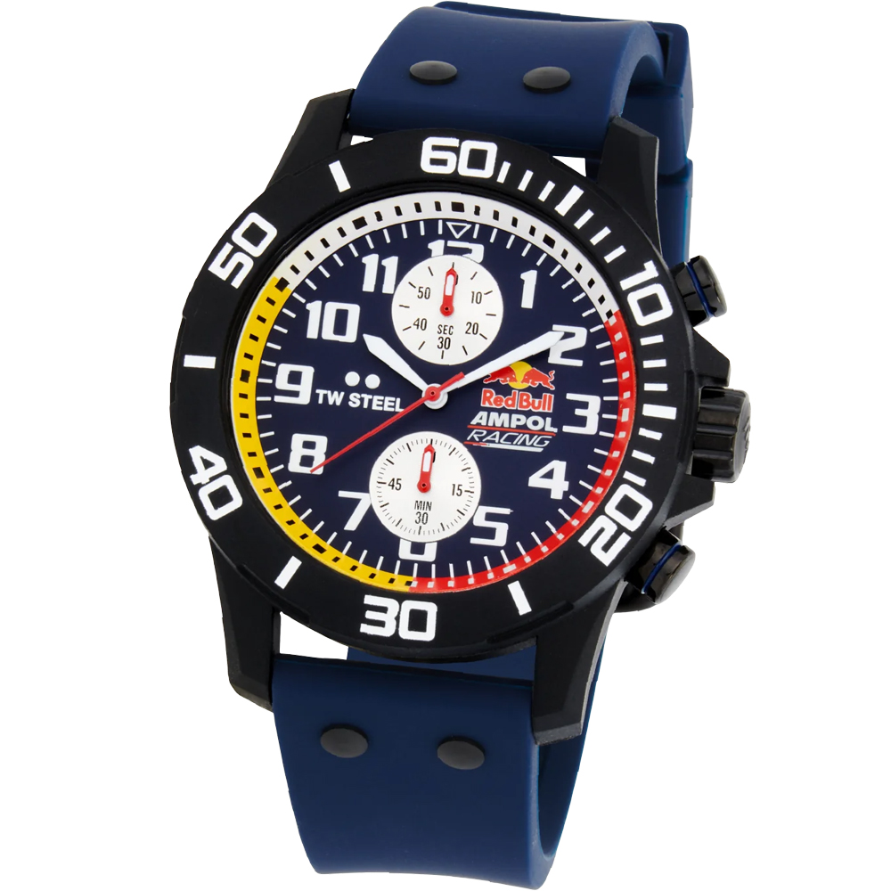 - Black satin chronograph dial with date with Red Bull Ampol Racing logo