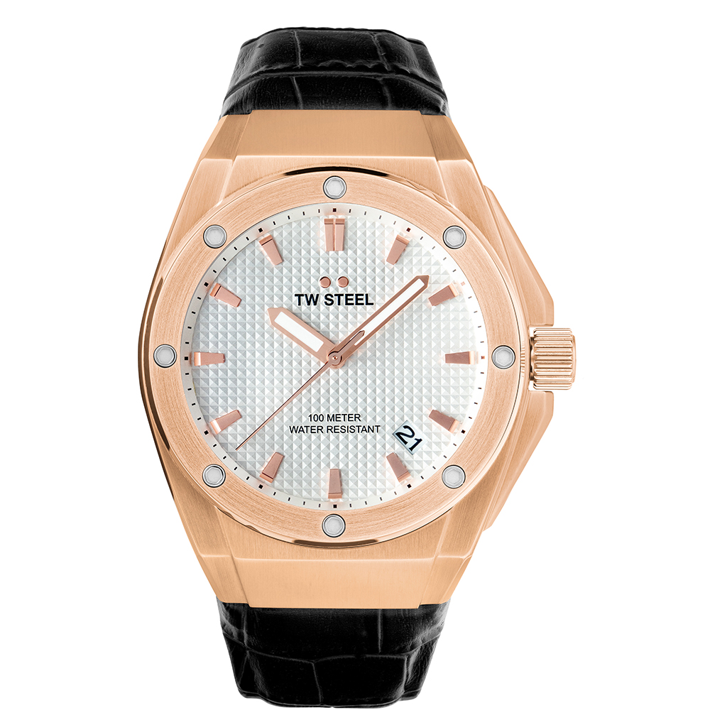 - High grade 316L PVD rose gold plated case and bezel with shiny screws