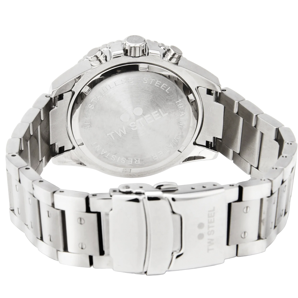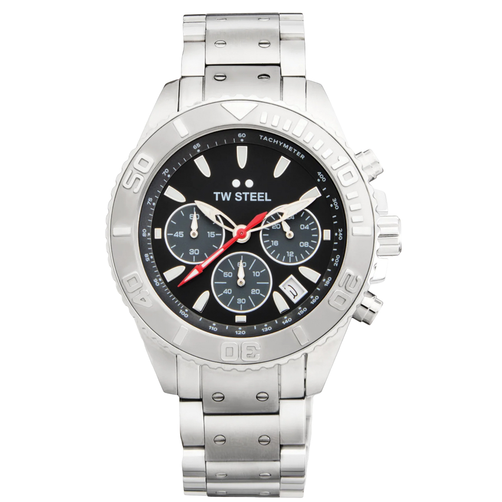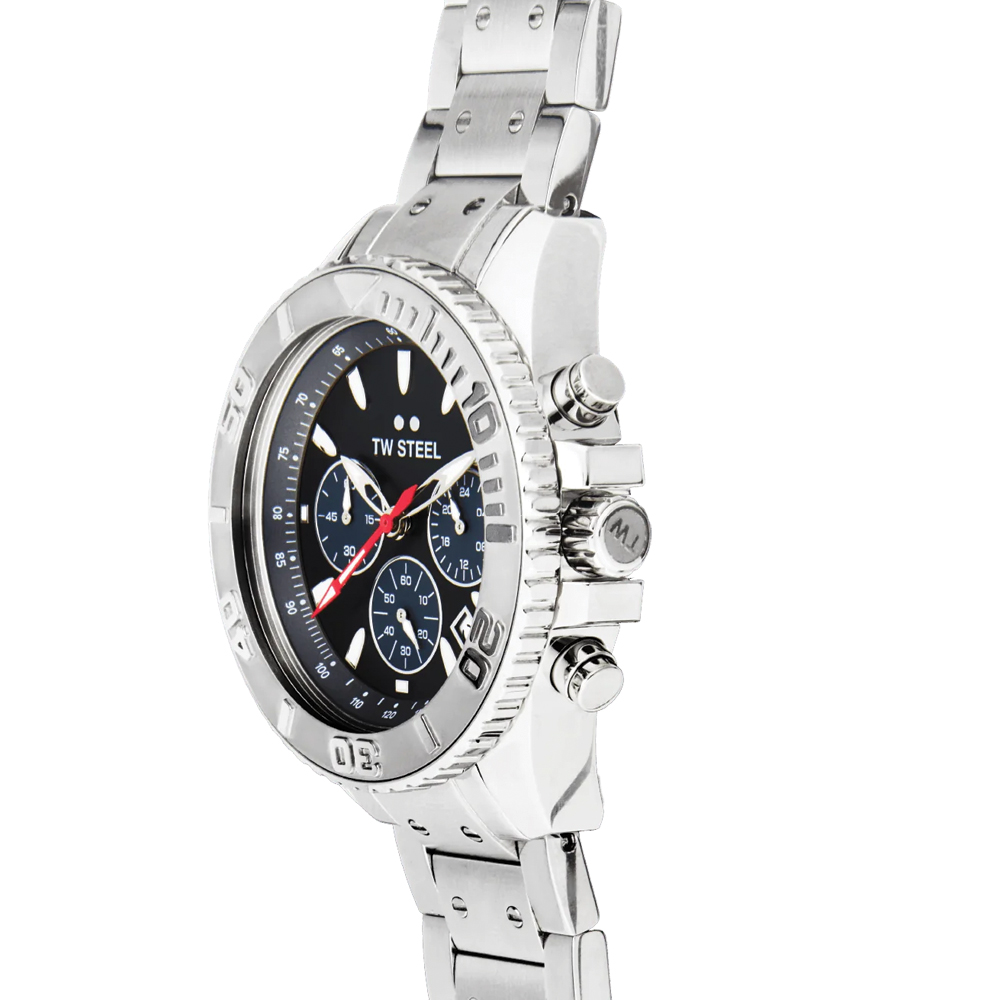With the Vanceur Diver collection, TW Steel navigates in style. The VA5 features a chronograph with a shiny steel case, rotating diver bezel, a steel strap, 10 ATM and a 2-year global warranty.